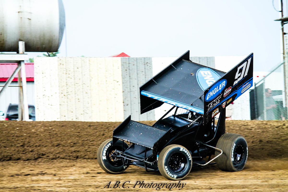 Off on Thursday to regroup, Thomas set out for northwest Ohio for two nights. The racy semi-banked oval in Attica held events for the Fremont/Attica Sprint Title Series, reeling in 29 cars for action in the 410 class. Going 22nd-fastest in qualifying put Thomas starting fifth in his heat race, and getting beat to turn one by his row-three colleague resulted in finishing sixth. Missing the top-four transfer to the feature, he would have to put the Engler Machine and Tool No. 91 into fourth or better in the B-main to move to the main event. Starting seventh, Thomas moved to sixth on lap one, but the 12-lapper saw little passing after that point, and he would miss the feature, taking sixth.
