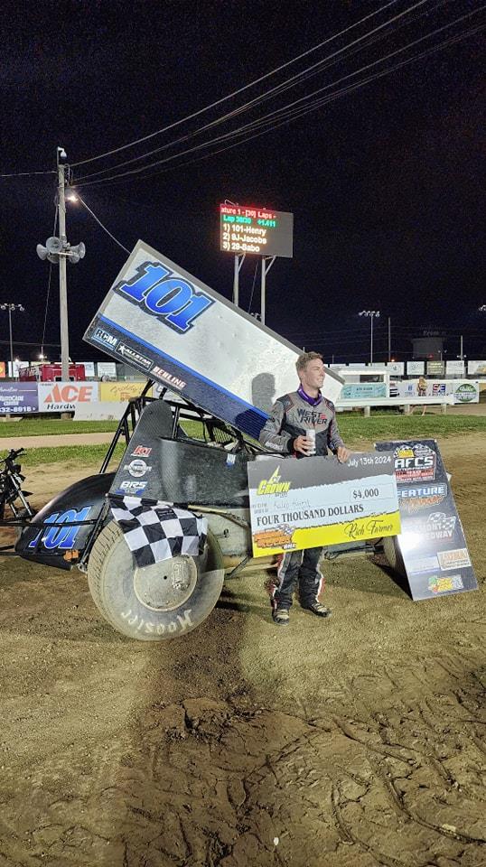 By Brian LiskaiFREMONT, Ohio – There’s just something about Fremont Speedway presented by Gill Construction that brings out the best in sprint car drivers from California. A few years ago California driver Buddy Kofoid claimed the track championship and recently brothers Cole and Caron Macedo scored victories at “The Track That Action Built.” That California connection continued Saturday, July 13 on Crown Battery Night as Kalib Henry from Sacramento, California scored his second 410 sprint win of the season at Fremont.