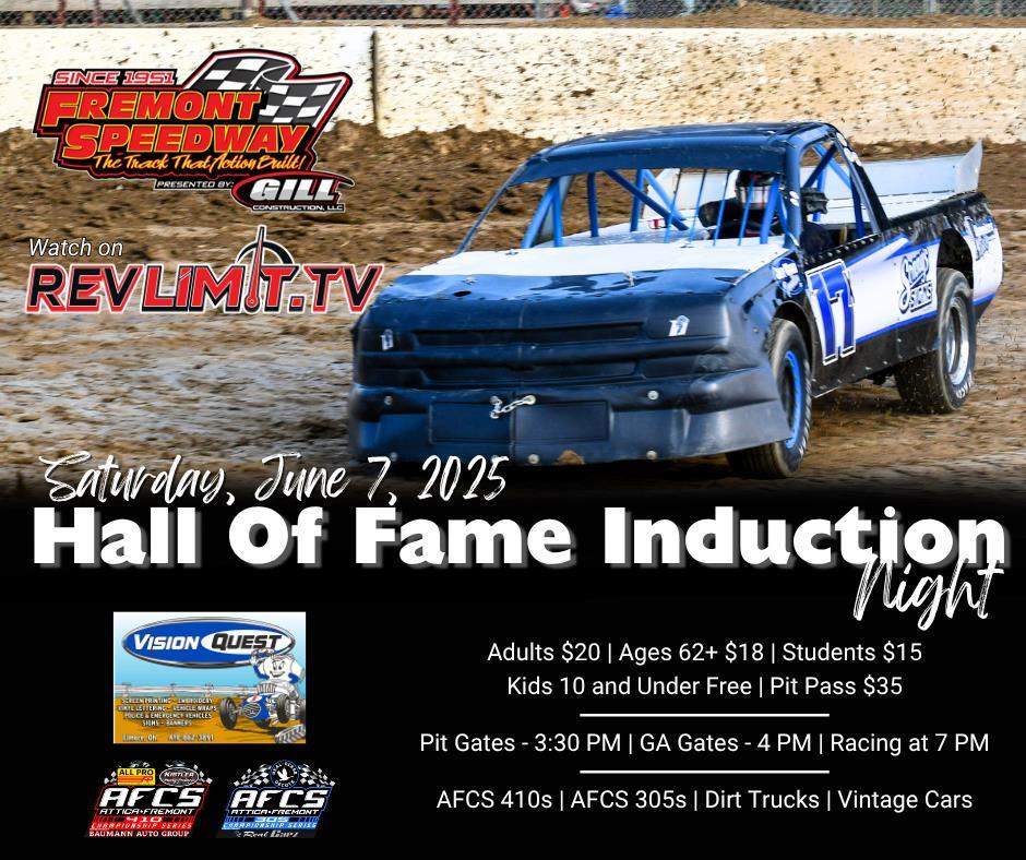 Join us this Saturday, June 7th, for Vision Quest Hall of Fame Induction Night. Gates will open at 1 p.m. for this year's induction, and the induction ceremony will start at 2 p.m. under the covered grandstands.