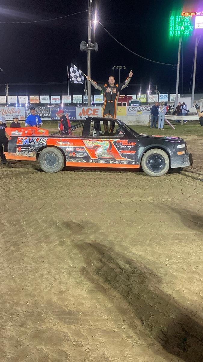 “This thing has been amazing. I never dreamed I’d get one win here let alone 89 now. I have to thank Jeff Babcock, Squirrel, my wife and kids,” said Valenti beside his Craig Miller Trucking, Conrad Transportation, Dave Story Equipment, A Plus Auto Center, Smolders Speed Concepts, Holman Drilling, S&S Hauling and Excavating backed #7B.