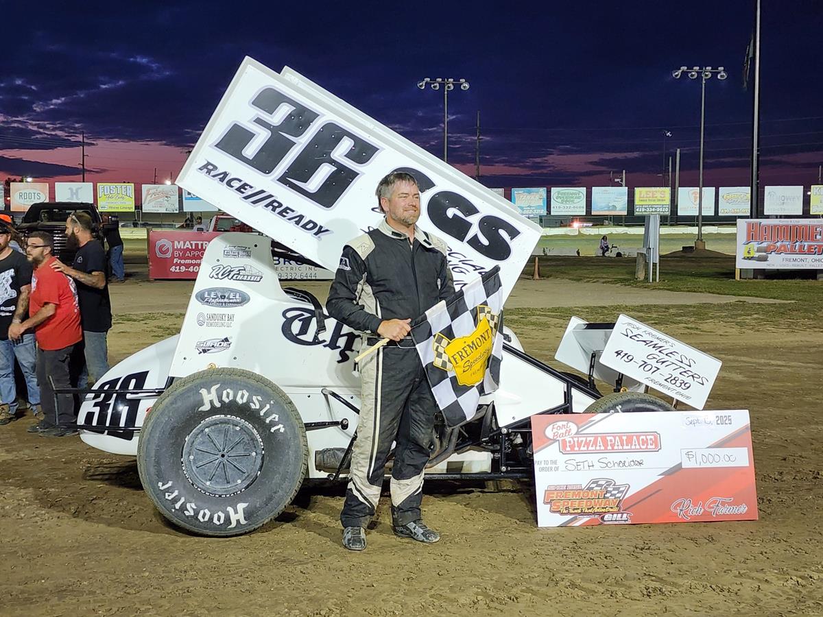 The Fremont Federal Credit Union 305 Sprints were divided into two features with Seth Schneider scoring the win in the first 25-lap A-main and John Ivy holding off a big late race challenge from TJ Michael to win the second.