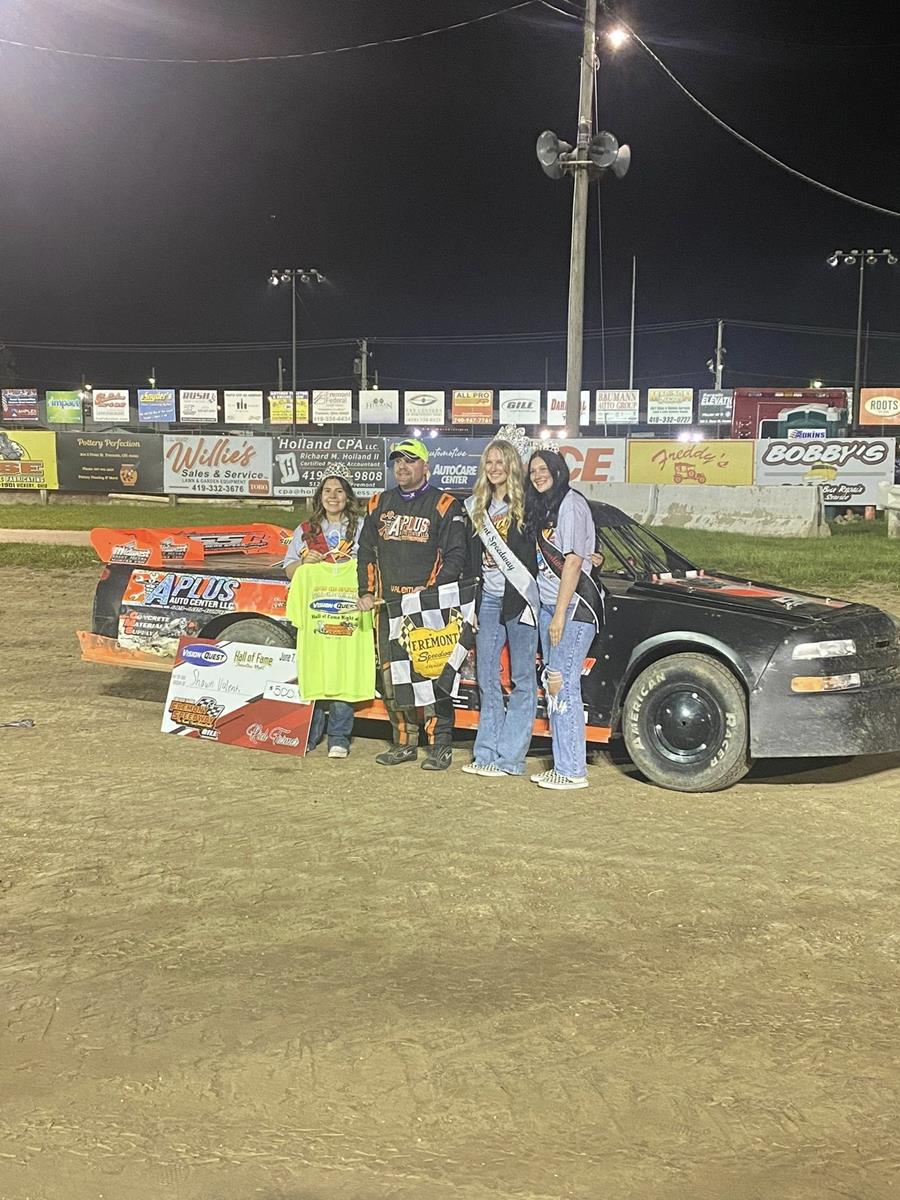 “It was pretty hard to pass. The first green flag run I felt pretty good and the second one I knew I wasn’t making good enough time but didn’t know what to do. We got that last caution (with 11 laps to go) I could tell guys were running the bottom and I looked over my shoulder and saw Kasey running the bottom so that confirmed I needed to run the bottom. I tried to execute as good as I could. I was a little unsure. The car was good. We put a new engine in this week that Gary (Griffith) did for us and we had to figure some quirks out at Attica but I’m really happy,” said Henry beside his Premier Planning Service, Jeff Ward Demolition, Ohio Logistics, Primal Tee Shop, Innovative Excavating, Elliott’s Custom Trailers and Carts, FK Rod Ends, King Racing, Griff’s Engines; Berryman Racing Shocks, Callie’s Performance Products, Dyers, Power Cool Manufacturing, SCS Gearbox, Tony Elliott Foundation backed #33W.